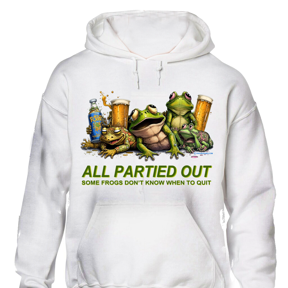 Check out our “All Partied Out” Frog Party Hoodie. You gotta’ love this funny and very creative design, created by our in house artists! This is a great hoodie for both men and women. Wear this to your next party and make heads turn! The enlargements you see are a bit fuzzy (we use low resolution images so the images load faster), but the prints on the hoodies are as crisp and sharp as you would expect! They come in four colors, so pick the one you like! These hoodies are printed on a quality 100% cotton hoodie, and the sports grey is a 90/10 cotton/poly blend hoodie. This is an Ultra weight 6.0 oz weight, not the lighter 5.6 oz Heavy weight tee. The hoodies are printed with the latest digital technology with eco safe water based ink, which also gives the prints a softer feel. The hoodies are shipped from our printing facility which is a pet free and smoke free facility. Therefore, there is no concern to those who might be concerned about health issues with animals, odors, etc. from our products. Please note that a size chart is included with the photos. Please check your size against the size chart prior to ordering as these hoodies are print on demand, which means we print them to your individual order, and not usually subject to returns unless you received it damaged or some error was made on our part. Message us for more details. Would make a great gift, even to yourself. Thanks, and Happy Shopping!